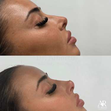 La rinomodelación(nose filler) es un tratamiento estético no invasivo que mejora la forma de tu nariz de manera natural y armoniosa. Mediante la aplicación de ácido hialurónico, podemos suavizar jorobas, levantar la punta o corregir asimetrías sin necesidad de pasar por el quirófano.